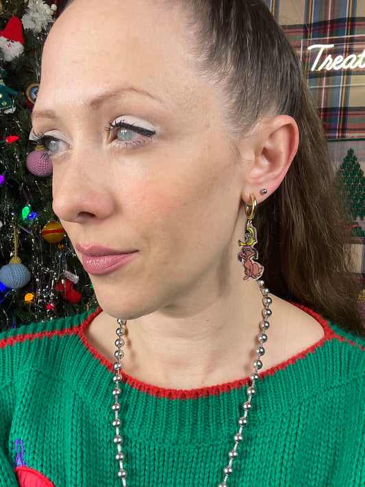 Sold outGrinch & Max earrings (Max sitting)