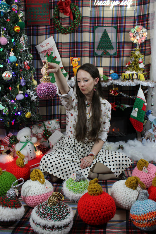 Fuzzy Christmas Ornament - Red, Green, White (XL)